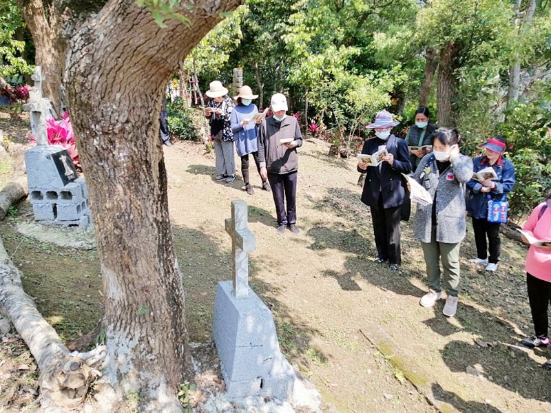 神父在彌撒道理中分享,四旬期的由來為什麼要守齋?為什麼我們不能吃大魚大肉?是要我們守思、言、行為上的齋,特別是我們的口,少批評、少罵人、多說善良的話。彌撒結束後教友沿著苦路,每人站到一處,在苦路十字架旁,唸天主聖三光榮頌,結束了拜苦路,我們也在十字架旁大合照作為永久的記念。
