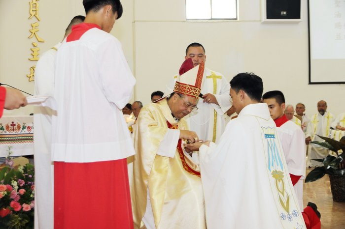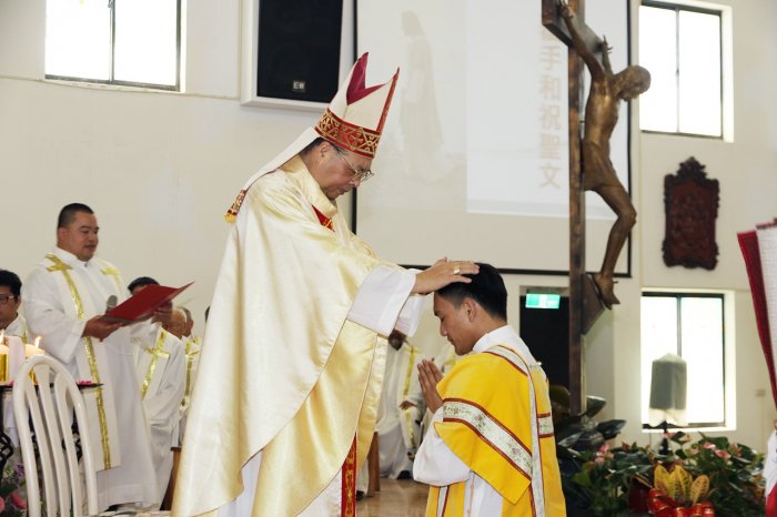 在授予聖秩禮中,眾人一起詠唱諸聖禱文,與會的司鐸皆以覆手禮呼求聖神降福這位被選者。直至披上祭衣之際,眾人滿懷感動地為我們的新司鐸喝采,也為我們這位新牧人與大司祭祈禱。