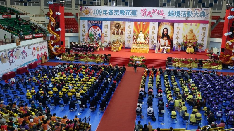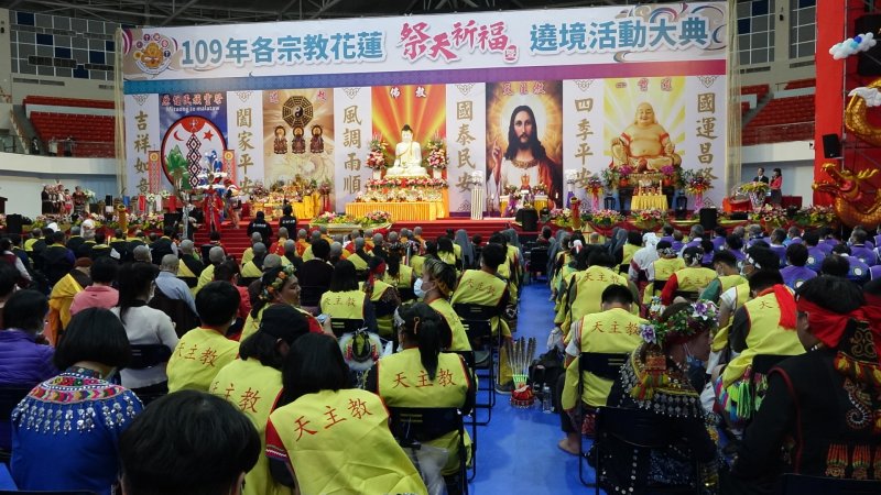 下午各宗教聯合祈福禮開幕典禮在花蓮縣立體育館舉行,花蓮各宗教祭天祈福活動已經邁入第 11 個年頭,祈福以尊重、和諧、包容、平安為訴求,提供人民心靈的慰藉,促進整體社會之祥和安寧,感謝上天對於花蓮這塊福地的眷顧,也感謝佛教、道教、天主教、基督教、原住民祖靈及一貫道等宗教團體共襄盛舉,引領花蓮鄉親共同感受祥和的力量。祈求天佑台灣每一塊土地,使人民安居樂業、家和萬事興。
