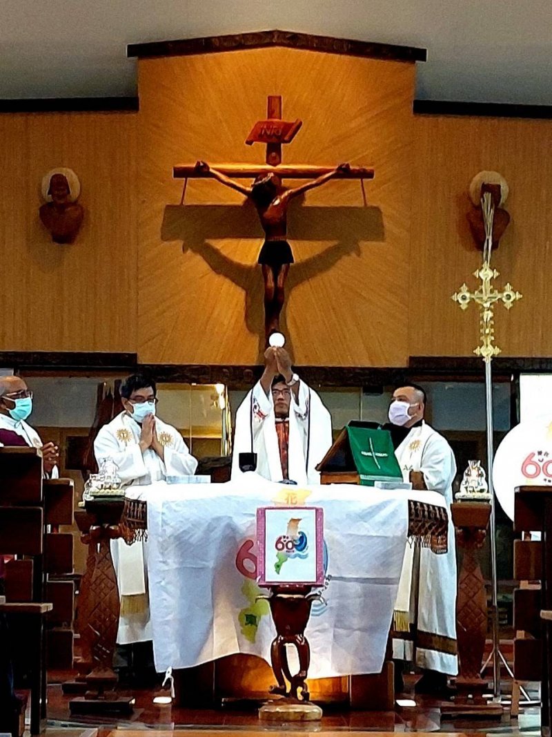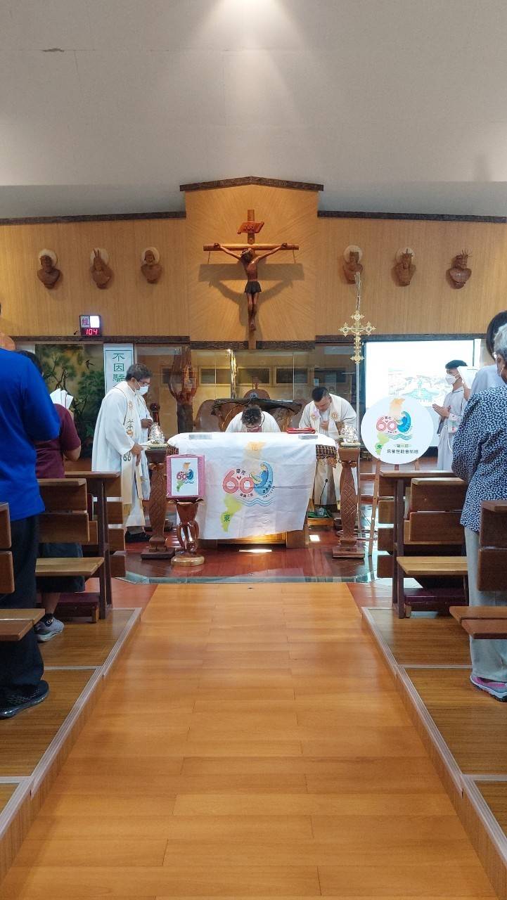 花蓮教區六十周年-九日敬禮彌撒第一日晚間在金崙天主堂舉行。主禮神父為謝慧能神父,共祭神父:金崙堂區本堂神父蔡恩忠神父、大武堂區本堂神父董瑪竇神父、花蓮教區禮儀長林信良神父與教區團隊,偕同金崙鐸區信友們一起感恩讚頌天主的恩寵福祐。