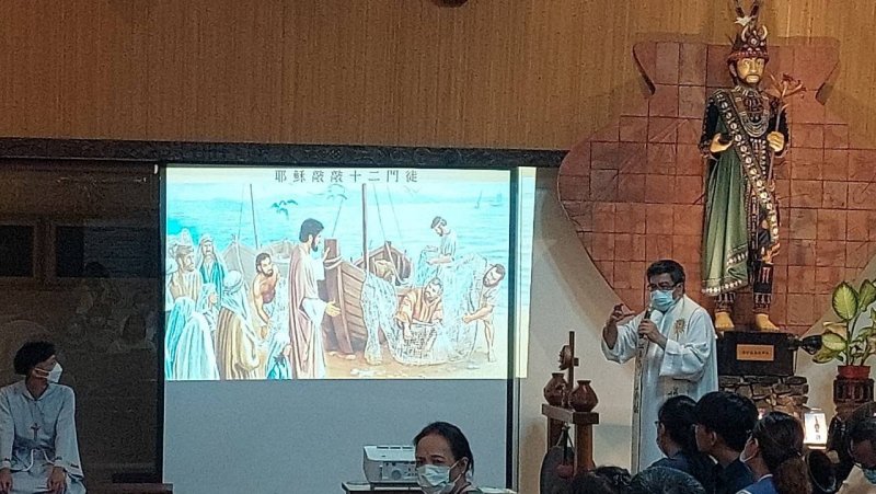 彌撒講道中,蔡恩忠神父以教會歷史的發展沿革,分享教會永不停息的傳教工程。從教會磐石“伯多祿”,到至今普世教會的發展。教會因其大公性、有組織性的福傳行動,從原本部分的區域,漸漸地蔓延到不同土地。過程中雖歷經了種種艱辛磨難,但透過各傳教士堅強與熱誠的精神,建立、扎根於各角落的教會。